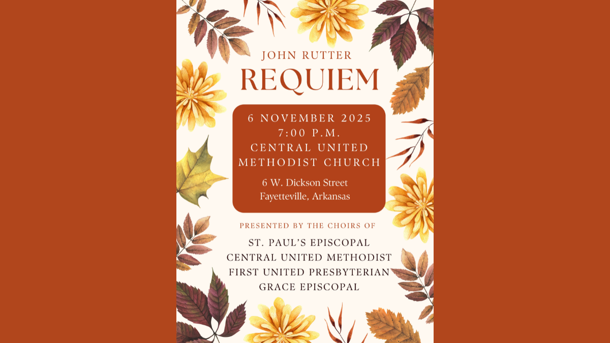 REQUIEM CONCERT AT CENTRALTonight at 7pm! Be sure to join us for a night of musical excellence as the Central, St. Paul's Episcopal, First United Presbyterian, and Grace Episcopal choirs join voices for a moving performance of John Rutter's Requiem in our historic Sanctuary.