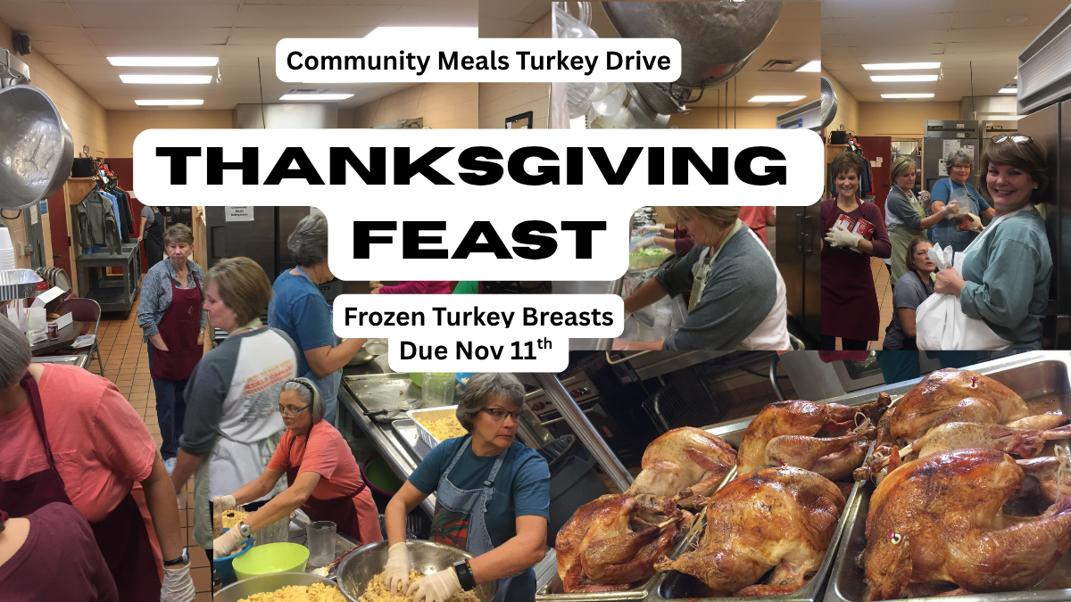 TURKEY BREASTS NEEDED FOR COMMUNITY MEALSThis month's ministry spotlight focuses on our Community Meals Turkey Drive. We are in need of frozen turkey breasts for our upcoming November Thanksgiving meal. Your contribution helps feed over 100 people each Tuesday and Thursday here at Central. Please