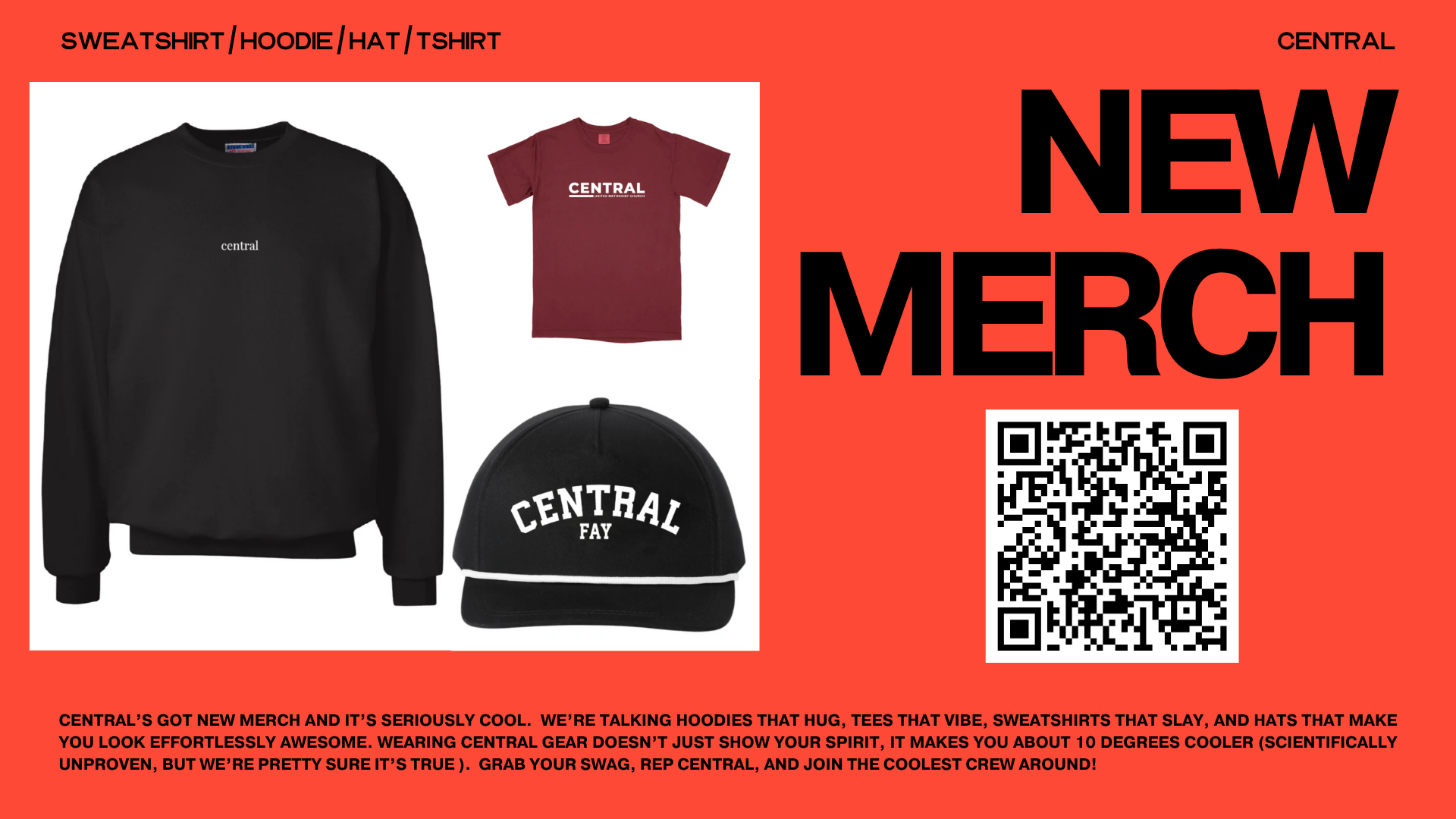 NEW CENTRAL MERCH IS LIVE! Our new Central merch goes live TODAY! Orders can be placed now through Thursday, November 20. Check out our hoodies, crewnecks, T-shirt, and new hat! You don't want to miss out! All orders will be delivered to