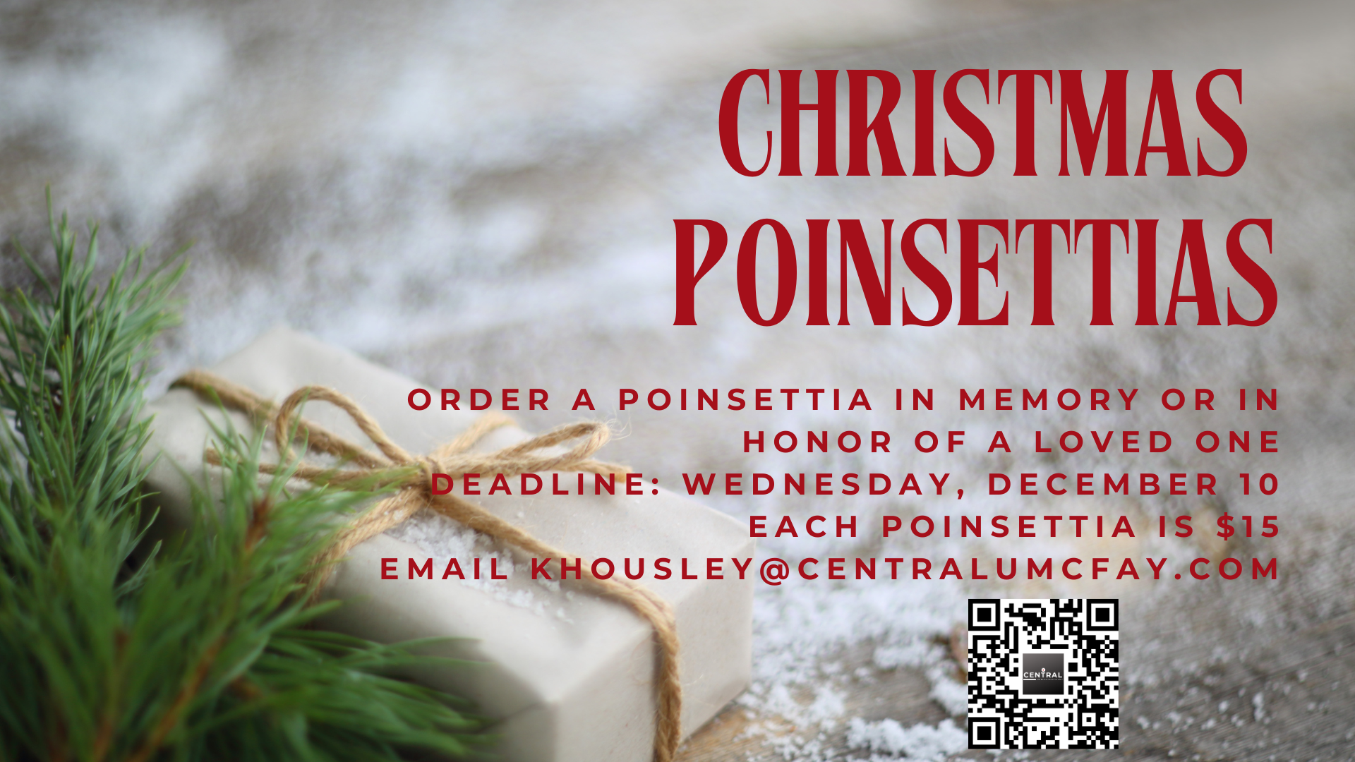 CHRISTMAS POINSETTIASThis Advent, reserve a poinsettia in memory or honor of a loved one. All poinsettias will be displayed in our Sanctuary and Contemporary Worship space from December 14 through Christmas Eve. Registration ends on Wednesday, December 10. You can take your
