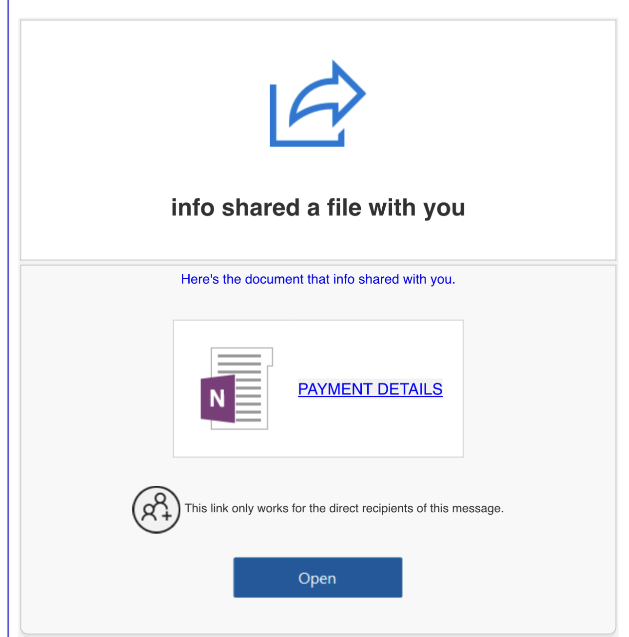 message, please do not open it or click on any attachments labeled “Payment Details.”